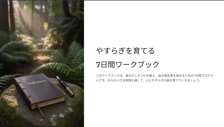 本プログラムは7日間にわたり、1日1つずつ実践できるやさしいワークを通じて、心を整える習慣を身につける内容です。